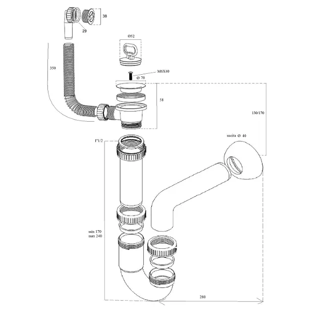 Zona de depozitare a chiuvetei are o pregătire pentru un orificiu, ceea ce permite utilizarea unei baterii stative. Locația orificiul pregătit în prealabil este marcată pe desenul tehnic.