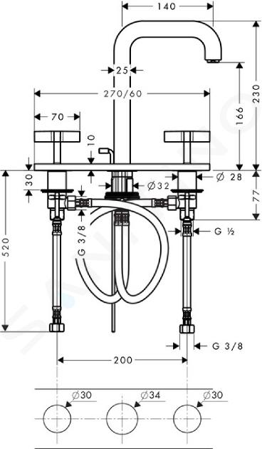 Baterie stativă lavoar, 3 orificii cu evacuare
