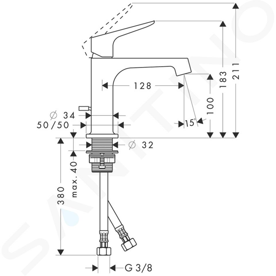 Baterie stativă monocomandă pentru lavoar cu evacuare