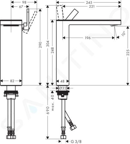 Definește spațiul utilizabil dintre lavoar și pipa de scurgere a bateriei. Cu cât spațiul este mai mare, cu atât utilizarea bateriei este mai variată.