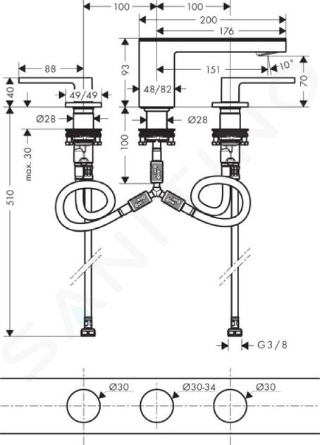 Baterie lavoar cu trei orificii