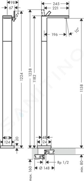 Baterie de lavoar, monocomandă, cu montaj pe podea