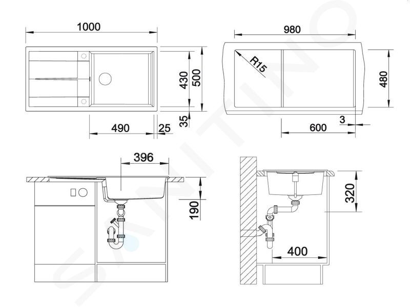 Dimensiunea totală a chiuvetei este de 1000 x 500 mm, în timp ce dimensiunea chiuvetei în sine este de 490 x 430 mm. Adâncimea chiuvetei este de 190 mm.