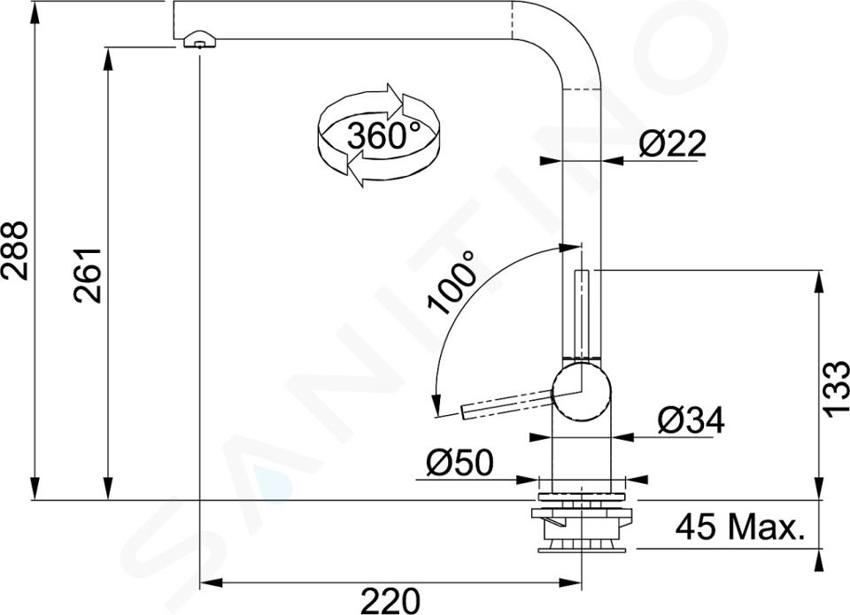 Acest produs din gama de baterii Franke are o zonă de confort de 261 mm.