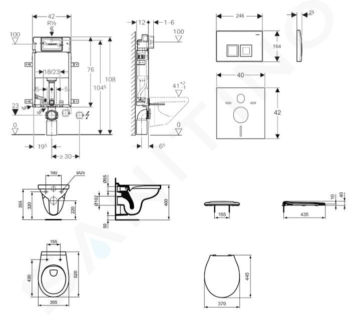 Pentru ca toaleta ta să funcționeze în mod fiabil, este necesară o instalație de premontaj. Pentru acest set a fost ales Geberit Kombifix cu rezervorul ascuns Delta 12 cm. Elementul flexibil este pregătit pentru instalarea în construcții de zidărie și este reglabil în înălțime, astfel încât chiar și un meșter cu experiență medie în bricolaj se poate ocupa de instalare.
