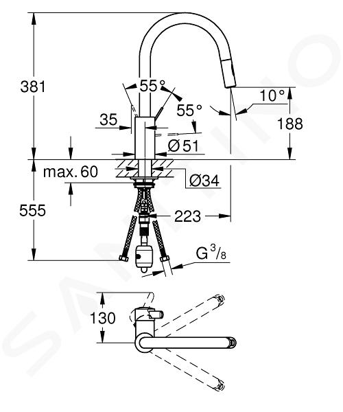 O caracteristică practică este dușul extractibil, unde poți comuta cu ușurință între perlator și jetul de duș SpeedClean. După utilizare, dușul poate fi returnat ușor și simplu, datorită sistemului de retragere GROHE EasyDock. Avantajul este controlul lin și precis al manetei metalice, care este asigurat de cartușul ceramic cu tehnologia GROHE SilkMove. Suprafețele cromate sunt protejate împotriva zgârieturilor și a acumulării de murdărie. Această piesă este protejată de tehnologia GROHE StarLight. Se pot obține economii semnificative datorită limitatorului de debit reglabil în mod variabil.