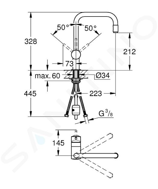 GROHE Minta - Baterie de bucătărie practică cu cap de duș extensibil