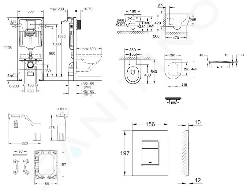 Modulele de instalare fiabile pentru fixarea toaletelor, a lavoarelor sau a bideurilor montate pe perete se remarcă prin designul lor precis și prin ușurința instalării. Sunt destinate montării pre-perete sau în partiții ușoare. Sunt autoportante. Rezervoarele încorporate îndeplinesc cerințe ridicate de funcționare silențioasă, sunt izolate împotriva condensului și contribuie la reducerea consumului de apă și, prin urmare, a costurilor. Sunt disponibile și kituri care conțin sistemul de instalare, toaleta, capacul și clapeta de acționare. Componentele individuale pot fi, de asemenea, achiziționate separat.