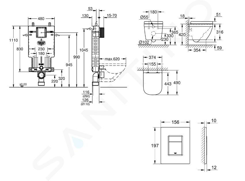 Modulele de instalare sunt concepute pentru montarea de toalete, lavoare sau pisoare suspendate. Pentru instalare sunt necesare suporturi de perete cu material de fixare. Rezervoarele încorporate sunt tratate împotriva condensului. Rezervoarele de spălare îndeplinesc cerințe ridicate de funcționare silențioasă, care sunt susținute și de un kit de amortizare al zgomotului. În plus față de elementul de montare, sunt disponibile și componente individuale sau un set de sistem de instalare și toaletă cu capac și clapetă de acționare.