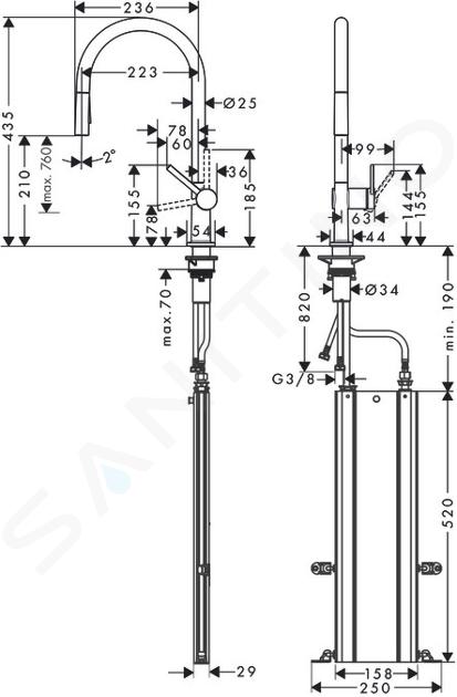 Dacă lavoarul și bateria nu se potrivesc, pot apărea stropi de apă, motiv pentru care Hansgrohe ComfortZone definește un spațiu individual utilizabil între lavoar și baterie.