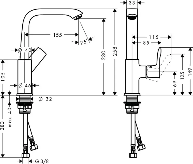 Bateria oferă ComfortZone 230 și un interval de rotație de 120°. Acest lucru asigură o mare libertate de mișcare, de exemplu atunci când îți speli părul sau te bărbierești la un lavoar mai mare. Bateriile și dușurile Hansgrohe echipate cu funcția EcoSmart utilizează cu până la 50% mai puțină apă decât alte produse. În același timp, această tehnologie economisește energie, deoarece trebuie încălzită mai puțină apă.