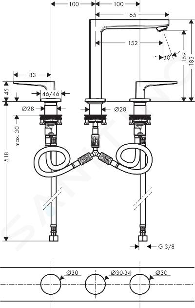 Baterie lavoar cu 3 orificii, cu set de scurgere ComfortZone 160 pipă... Vezi descrierea completă