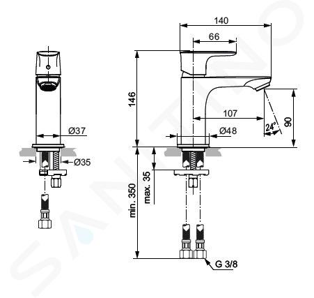 bateria de lavoar Ideal Standard Connect Air Slim este economică. Utilizează doar 5 litri de apă pe minut. Este vorba doar de o jumătate de găleată, de dragul ilustrației.