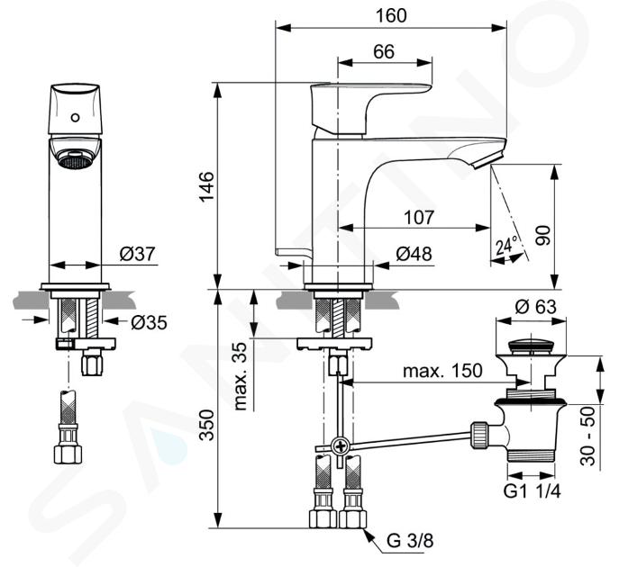 Baterie lavoar monocomandă SLIM pipă fixă debit la 3 bari 5 l/min cu... Vezi descrierea completă