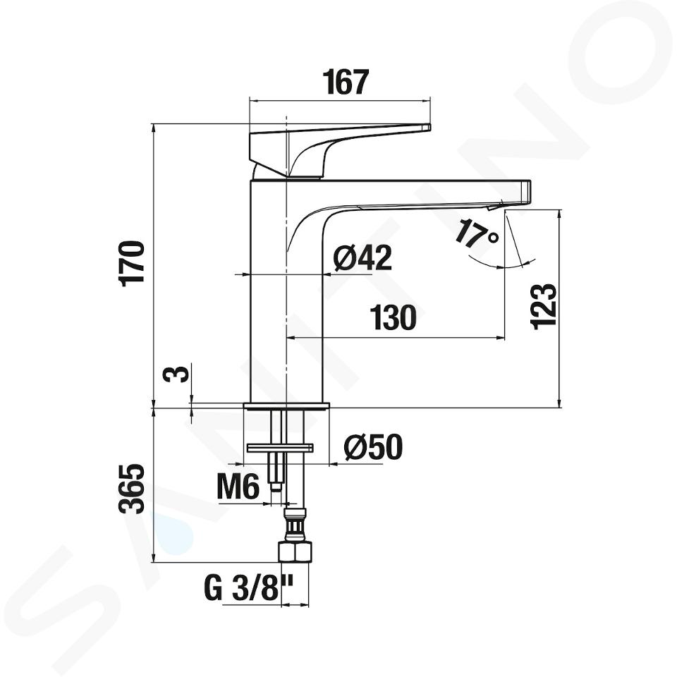 Baterie lavoar L, monocomandă, fără evacuare