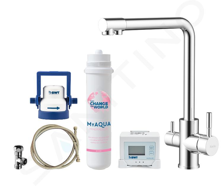 Unul dintre obiectivele kielle este de a extinde posibilitățile locuinței într-un mod care nu numai că satisface, dar adesea depășește chiar și cele mai exigente cerințe pentru confortul utilizatorului. Seria kielle Wimeo este o dovadă în acest sens. Oferă baterii de chiuvetă sofisticate, echipate cu un sistem de filtrare. Ele uimesc nu numai prin designul lor modern, cu o gamă de finisaje diferite, ci și prin funcționalitatea lor perfectă. Poți alege din trei tipuri diferite de filtre care oferă apă purificată și întotdeauna ceva în plus. Bateriile de chiuvetă au linii de apă și comenzi separate. Prin urmare, apa uzuală nu se amestecă cu apa filtrată. Toate elementele esențiale necesare sunt incluse în pachet, inclusiv filtrul ales.