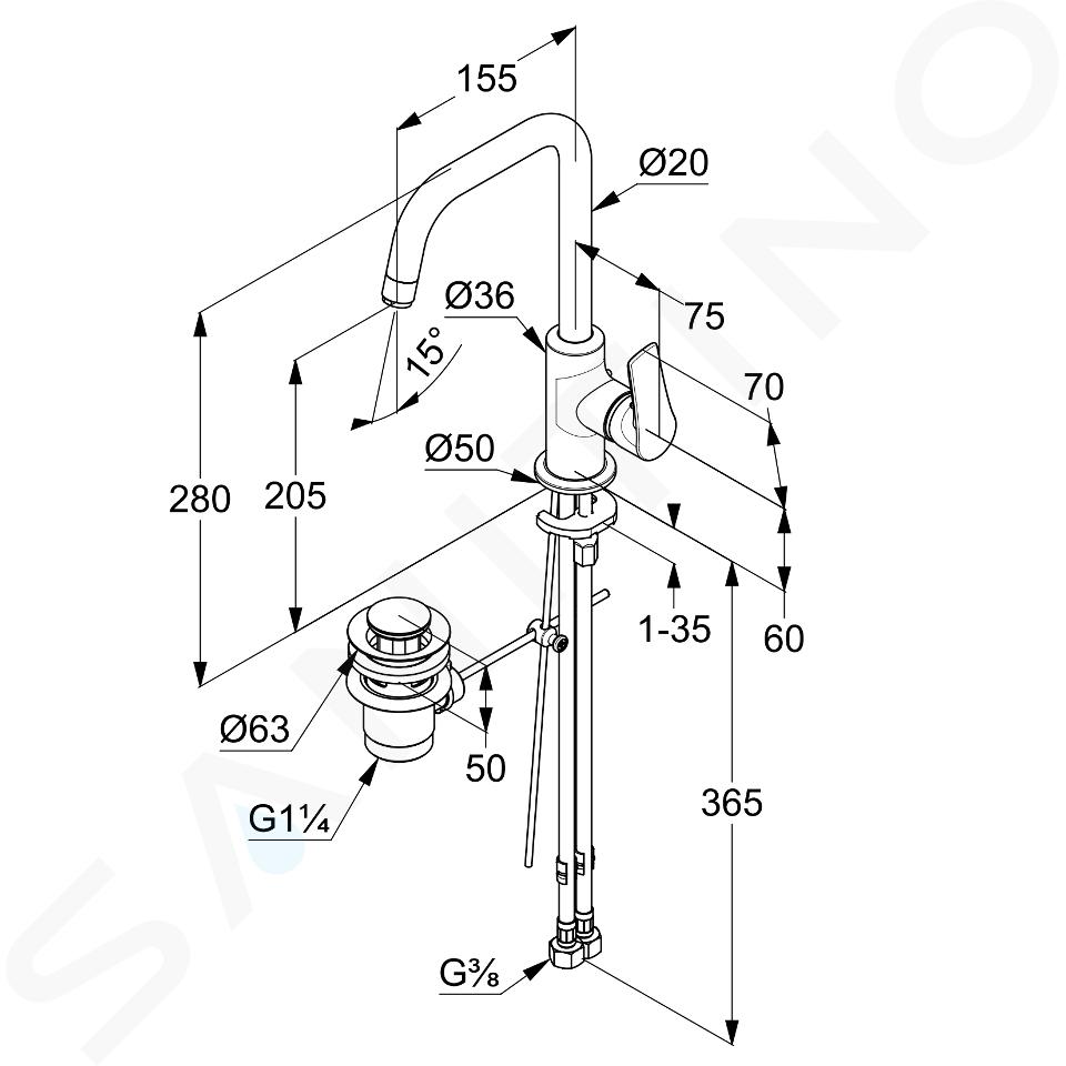 Baterie lavoar monocomandă stativă cu pipă rotativă montaj cu un... Vezi descrierea completă