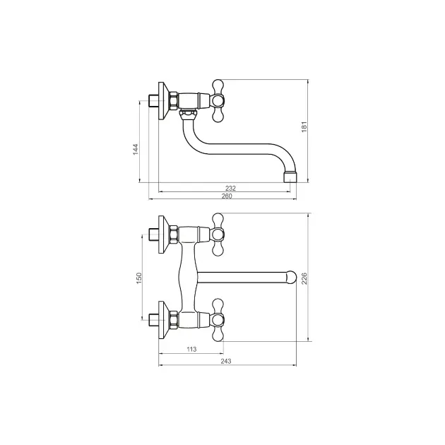 Baterie de bucătărie, cu montare pe perete