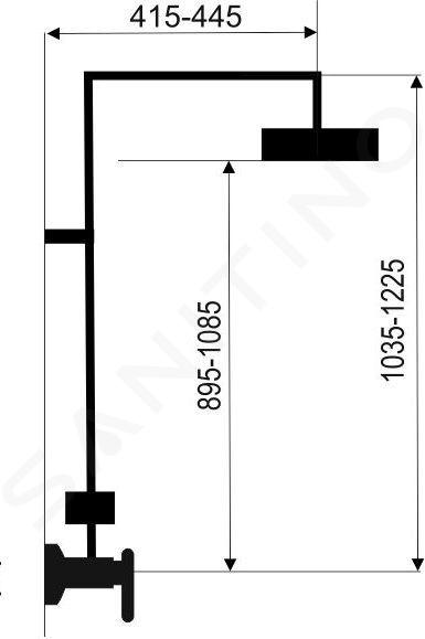 Înălțimea setului de duș 1035 – 1225 mm, distanța de la perete 50 – 80 mm.