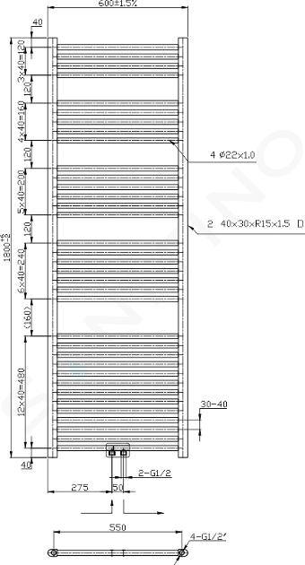 Element de încălzire drept, conexiune centrală culoare crom dimensiune... Vezi descrierea completă