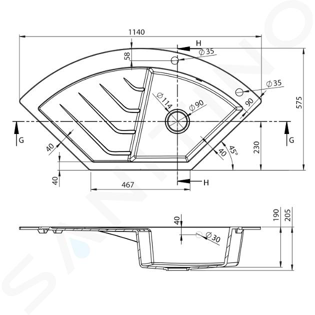 Chiuvetă încorporată, pe colț din granit, cu picurător