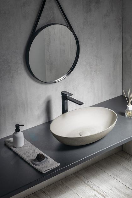 Chiuveta trebuie să fie neapărat albă? Sapho Formigo te va convinge de contrariu. În locul ceramicii tradiționale, betonul ia locul acesteia, iar culoarea albă obligatorie este înlocuită cu negru sau antracit. Formigo este conceput pentru a fi instalat pe un blat sau pe mobilier. Proprietățile sale excelente sunt date de o tehnologie specială a betonului ușor, lucrat de mâna unui meșter experimentat. Rezultatul este o chiuvetă neobișnuită cu un aspect atractiv. Nu îți fie teamă să mergi împotriva curentului. Originalul Sapho Formigo va deveni bijuteria noii tale băi.