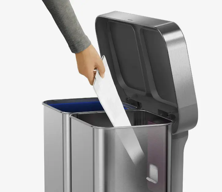 Marca Simplehuman se concentrează, de asemenea, pe mediul din bucătărie, oferind suporturi pentru prosoape de hârtie, suporturi de vase și pentru bureți. Seria de coșuri de gunoi te va impresiona nu numai prin gama largă și variantele de design, ci și printr-o soluție igienică impresionantă, care tratează și suprafețele. Vei găsi atât coșuri de gunoi încorporate, cât și independente. Unele variante sunt controlate prin voce și mișcare sau sunt dotate cu un distribuitor de pungi de rezervă.