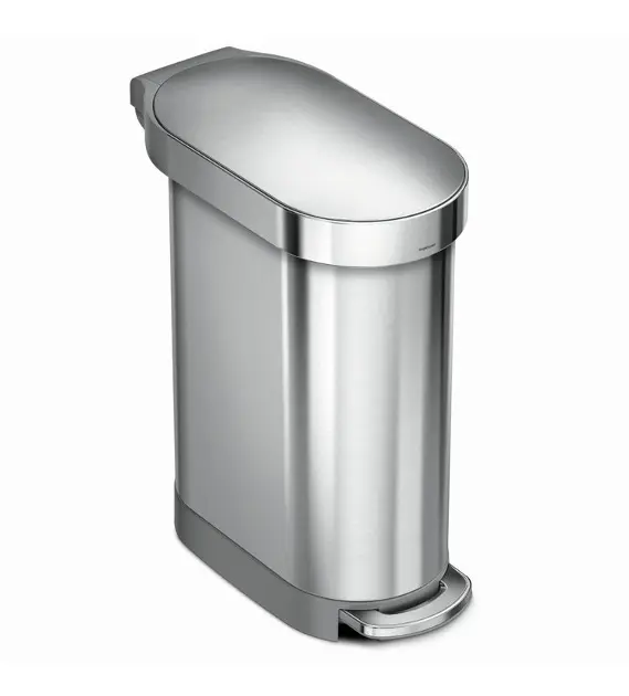 Coș îngust cu pedală, cu cadru din oțel inoxidabil